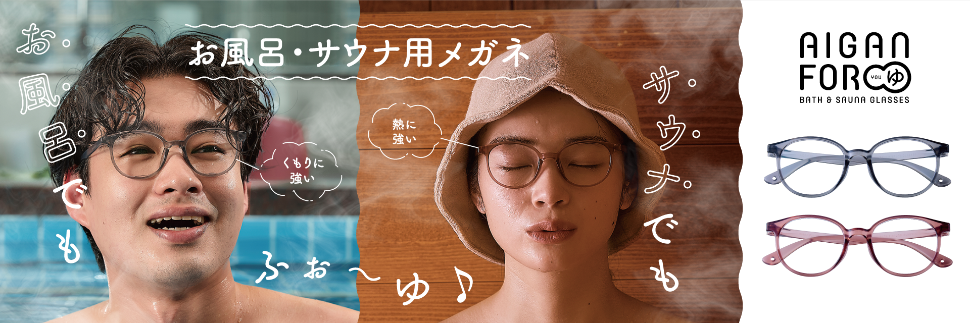 愛眼オリジナルのお風呂用メガネ「AIGAN FORゆ」をはじめ、流行のボストン・ウェリントンなどの人気フレーム、