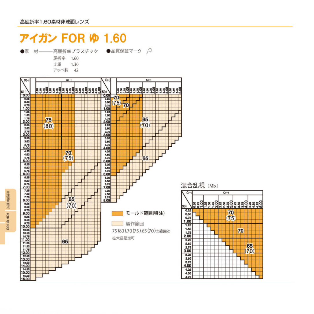 ※近視と乱視の組み合わせによっては、一部取り扱いのない度数がございます。特注レンズ(別途料金)にて対応が可能な場合もございますので、その際はメールにてご連絡させていただきます。