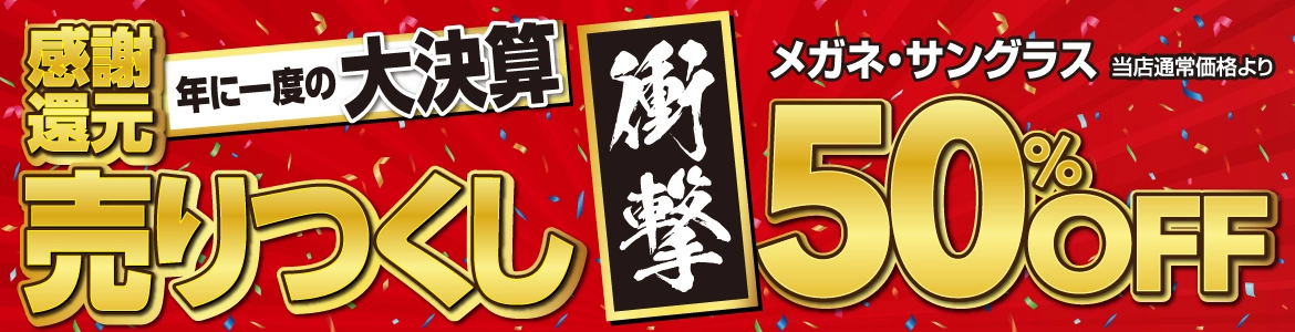 2/20~3/31 年に一度の大決算 感謝還元売りつくし 衝撃 メガネ・サングラス 最大50%OFF