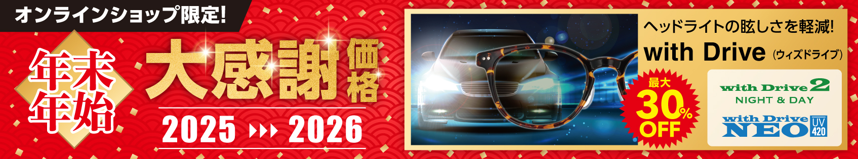 夜間運転に最適!ウイズドライブサングラス 最大30%OFF